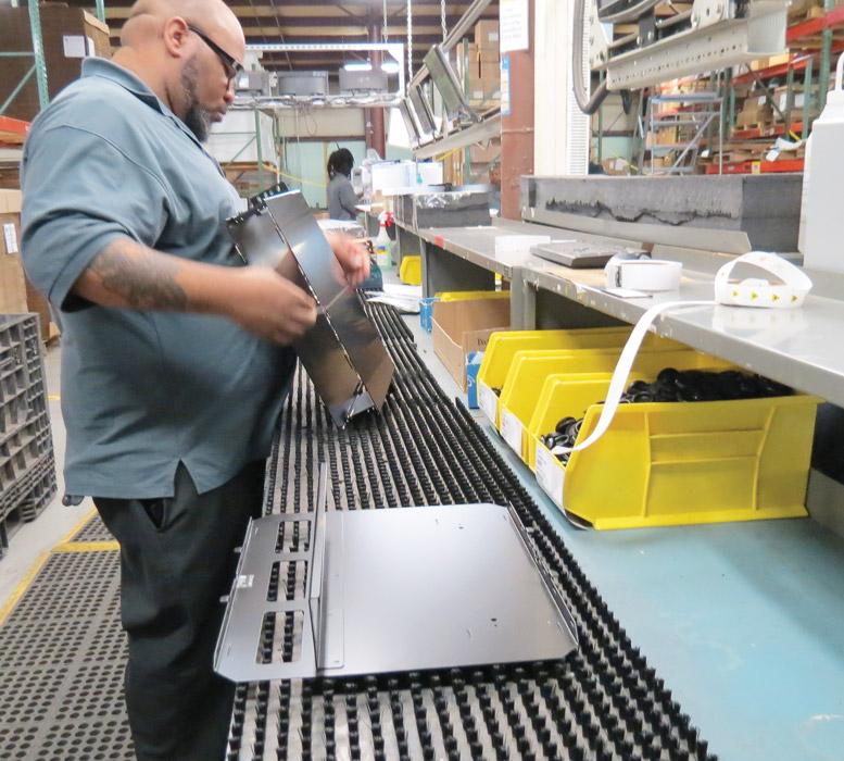 Richard Uber, quality manager , told this story during a tour the Alpharetta, Ga.-based fabricator gave for Manufacturing Day 2015. To prevent part scratches, the shop installed table brushes—rectangular sections that have a PVC base, or block, with stapled brush bristles—at certain assembly areas (see Figure 1).